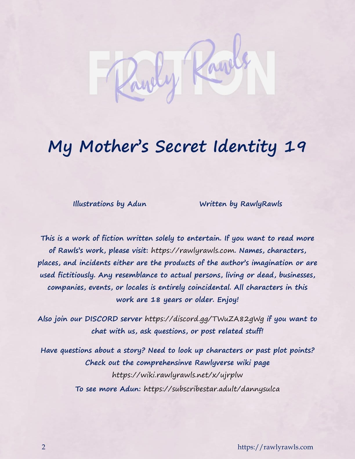 You've finished Chapter 19 of My Mother's Secret Identity [Adun | Danny Sulca , RawlyRawls]